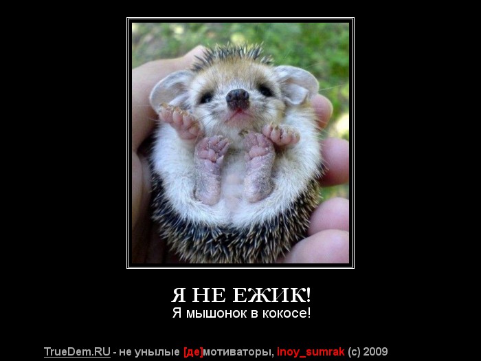 | Когда я вышел из спячки, узнал, что все личные дела пошли в камин еже, для разогрева дров!, изерги, столько моего труда угрохали, теперь с самого начала начинать..... Ну да ладно. Тема такая. Находите фото ежа которая вам больше всего нравится и скидываете ее сюда с краткой личной информацией. (что вы за еж, что хотите и в общем, как обычно, пишите, что хотите. "только как о еже, а не о Пете или Коле") Я потом фото подправлю, немного подредактирую, и....., в общем, что нить с этим сделаем. Токо не лениться, как минимум 3 строчки!. П.С.- фото ежей. друг у друга не тырить и на яблоки не обменивать, знаем мы вас.....